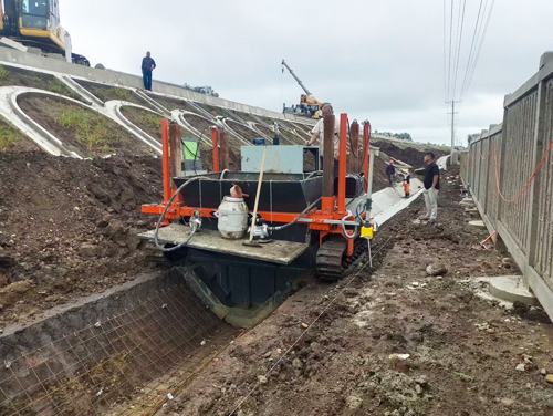 3 Paving Machine For Water Canal The moulds can be raised above the work surface, allowing the machine to move autonomously, up and down the access ladders.