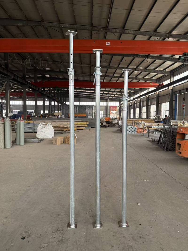 3.Steel Adjustable steel shoring prop has a inner tube ,outer tube nut and 2 pieces of plate which are welded together by CO2 arc,so it is easy to assemble and dismantle.